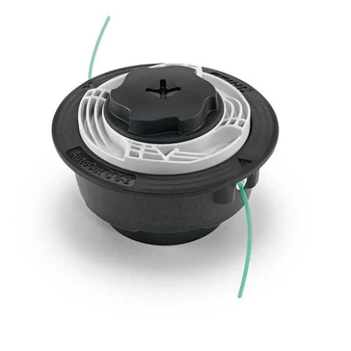A deux fils, pour fauchage et nettoyage. Réglage automatique de la longueur de fil dès lors que la tête faucheuse entre en contact avec le sol.