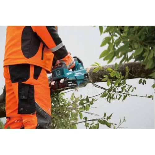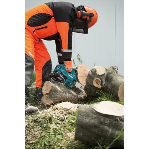 Tronçonneuse 36 V à batterie DUC306 de la marque Makita avec griffe métallique robuste pour une amorce de coupe sûre et confortable. L’écrou captif empêche la perte des écrous. Réglage du débit de la pompe à huile. Mode dopage de couple pour couper des branches épaisses (30 s de fonctionnement).