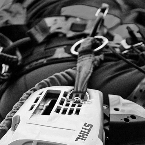 L’anneau de suspension permet à l’élagueur de maintenir sa tronçonneuse au harnais pour faciliter ses mouvements lors de l’ascension et des déplacements dans l’arbre.
