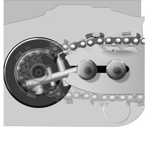 Situé sur le côté du moteur, le tendeur de chaîne latéral évite tout contact avec la chaîne ou la griffe lors de la tension de chaîne. L’opération est ainsi très sécurisante et très facile à réaliser.