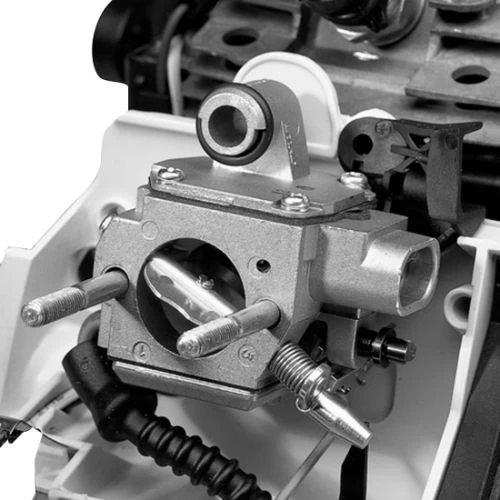 Le compensateur Stihl, intégré dans le carburateur, a pour effet de compenser l’encrassement progressif du filtre à air en stabilisant les gaz d’échappement et la consommation. Le filtre à air doit être nettoyé que lorsque l’on constate une baisse de puissance. Cela présente l’avantage que l’on peut atteindre de très longues intervalles de maintenance