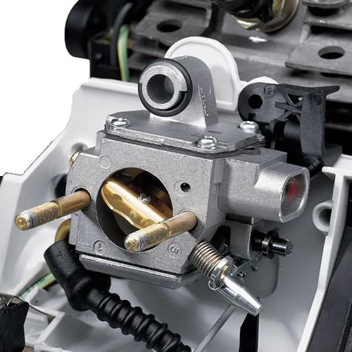 Le compensateur Stihl, intégré dans le carburateur, a pour effet de compenser l’encrassement progressif du filtre à air en stabilisant les gaz d’échappement et la consommation. Le filtre à air doit être nettoyé que lorsque l’on constate une baisse de puissance. Cela présente l’avantage que l’on peut atteindre de très longs intervalles de maintenance.